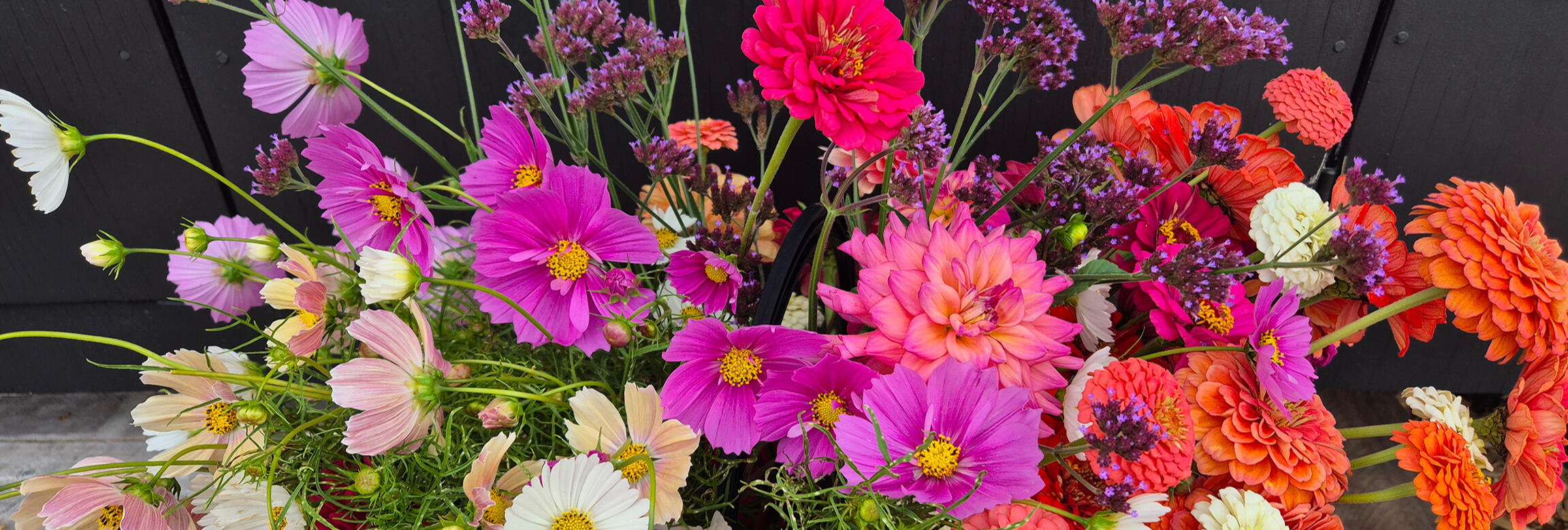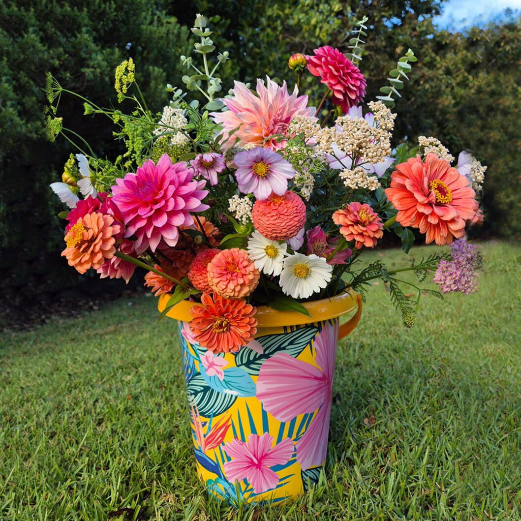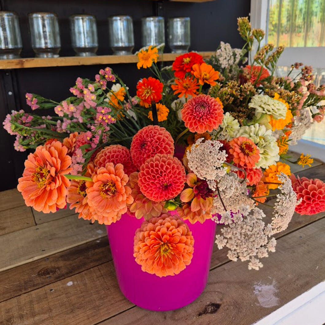 Hand-tied fresh flowers are cut to order and wrapped up with a neat little bow, just for you!As all of our flowers are grown right here, flower type and availability will vary depending on the season. Every bouquet is completely unique.
