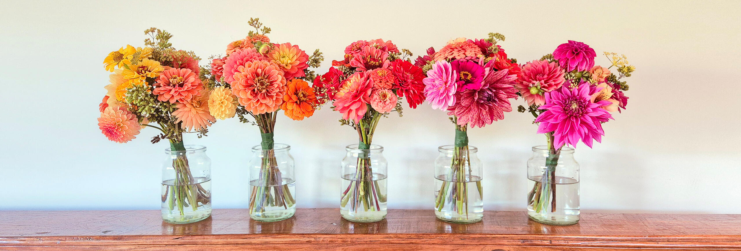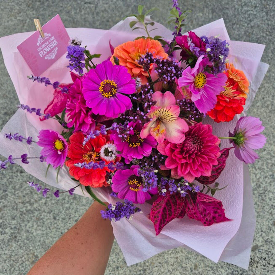 Hand-tied fresh flowers are cut to order and wrapped up with a neat little bow, just for you!As all of our flowers are grown right here, flower type and availability will vary depending on the season. Every bouquet is completely unique.